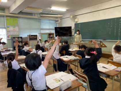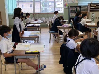 元気よく手をあげて発表したあとは「道徳ノート」に今日の学習のふり返りを書きました。