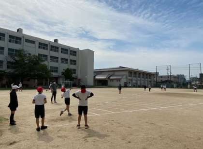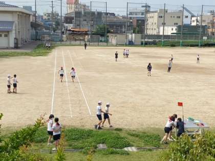 1限、6年生の子どもたちが、50m走とソフトボール投げにチャレンジしました。