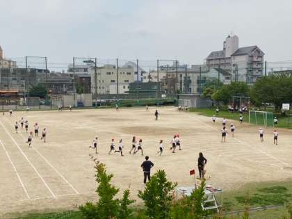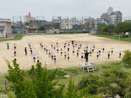ラジオ体操のあとは、ランニングやのぼり棒でウォームアップ、なかなか気合いが入っています。