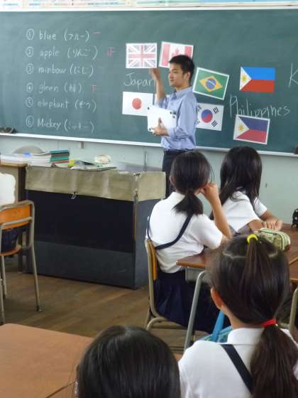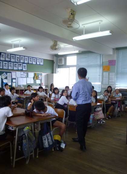 さっそく、2つのクラスで英語活動。子ども達は、国旗をもとにしたクイズで英語に触れ、1時間楽しそうに活動していました。