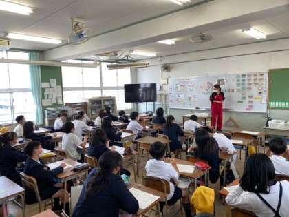 「バイキング給食にチャレンジ」のテーマで、バランスの良い食事について考えました。