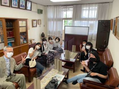 (小学校の時に入ったことがなかったという校長室で記念撮影をしました)