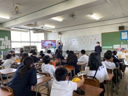 2組の英語科では、好きな四季の季節行事を英語で答えていました。