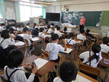 4年生の子どもたちが、魚ビンゴゲームを通して、給食にはたくさんの種類の魚が使われていること、また、、魚の体のつくりと含まれている栄養素について学びました。