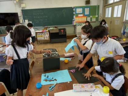 子どもたちが、ブラックボックスをつくっています。