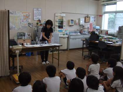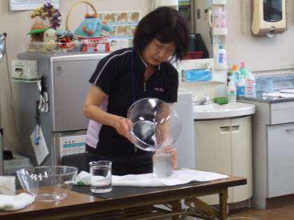 まず、遊んだ後や体育の後の手を、水だけで洗ってみました。その水をきれいな水と比べてみると・・・
