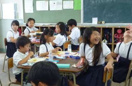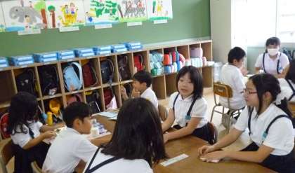 1年生は6年生と、2年生は4年生と、3年生は5年生と交流しました。はじめは、ちょっと照れくさそうにしていましたが、だんだん笑顔になっていきます。食べ終わったら、高学年を中心にお話をしたりゲームをしたりして、楽しく過ごしました。