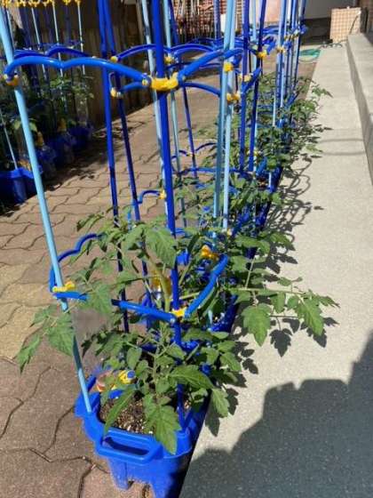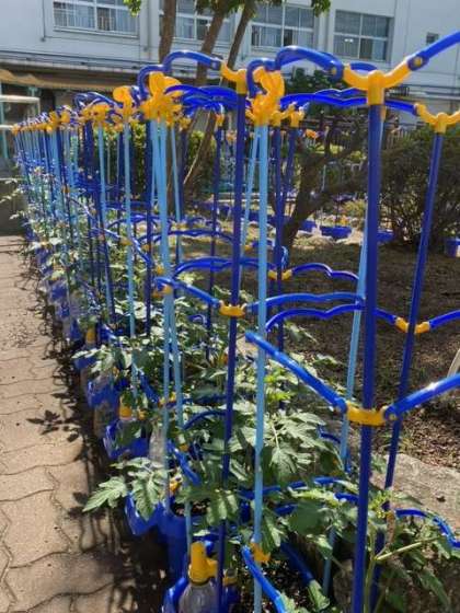 2年生の子どもたちが植えた「ミニトマト」も、ずいぶんと丈が伸びてきました。