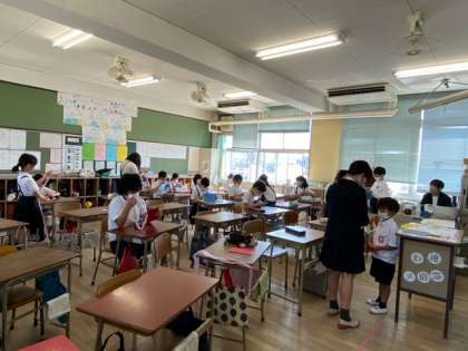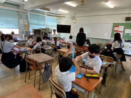 上級生(5・6年のお兄さんお姉さん)が下級生に親切に教えていました。