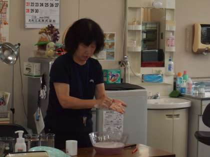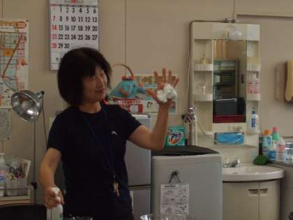さらに手のひらにペンで汚れをつけてみましたが、水はもちろん、石けんの泡をつけただけでも汚れはあまり落ちません。泡でゴシゴシこすってやっときれいになりました。