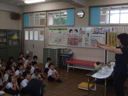 1年生は体重測定のときに、保健室で手洗いの実験をしました。6/12