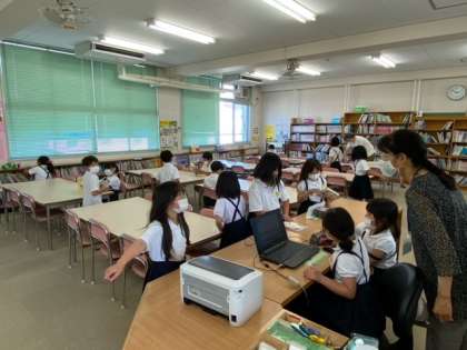 2組では、タブレット端末を使った学習にチャレンジしていました。ステージをクリアすると子どもたちから「やったー」という声が聞こえました。