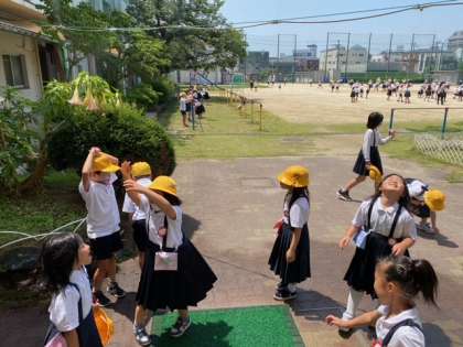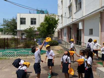 休み時間、子どもたちが大喜びではしゃいでいました。