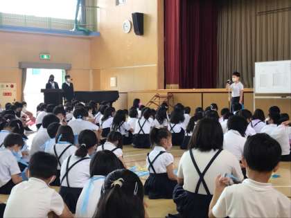 「3年ぶりに子どもフェスティバルを行うことができました。この日のために各学級で一生懸命お店の準備をしてきました。縦割り班でまわる順番も決めました。全員が楽しめるようにお互い協力しましょう。」