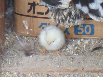 今日の朝、3羽めになる「ひよこ」が誕生していました。もう子どもチャボは元気に大きくなっていますが・・・小さな「ひよこ」は心配です。でもお母さんチャボが上手に育ててくれるでしょう。