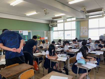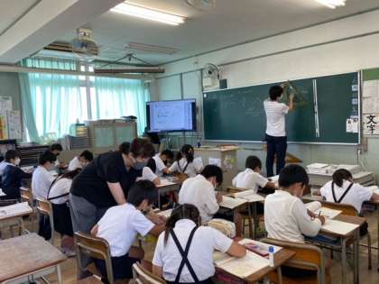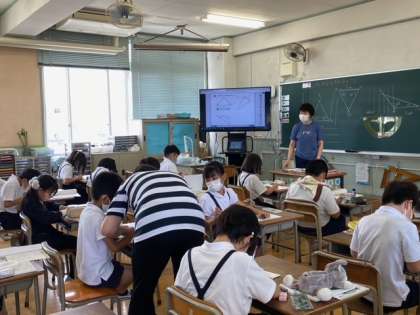 分度器を使い、角の大きさを測りながら いろいろな三角形を書いていました。