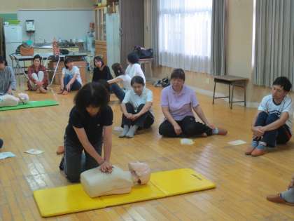 心肺蘇生法やAEDの使い方を教えていただきました。