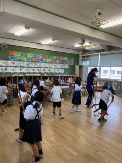 どの学年も、当番児童が一生けんめい、おそうじをしています。