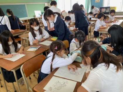 1年生の児童は、お兄さんやお姉さんと一緒に遊ぶのを 楽しみにしていました。