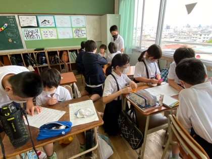 20分休みに、1年生の児童が6年生と交流しました。