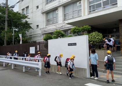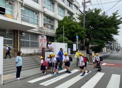今日も、正門では「おはようございます」と 子どもたちが元気よく先生とあいさつをしています。