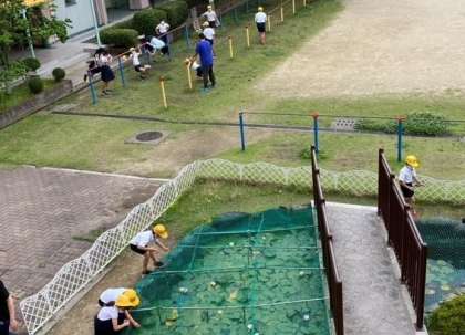 子どもたちと一緒に先生も逆上がりに挑戦していました。