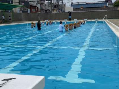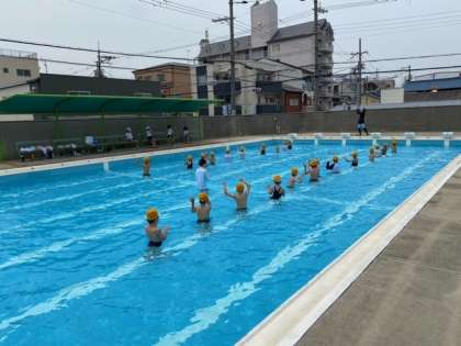 水に慣れた後は、体育の時間に練習した「妖怪体操」をしました。