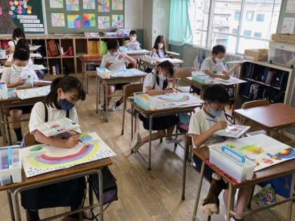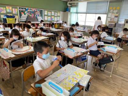 3年生1組の子どもたちが、図画工作科の時間に「わたしの6月の絵」をテーマに作品を描いていました。