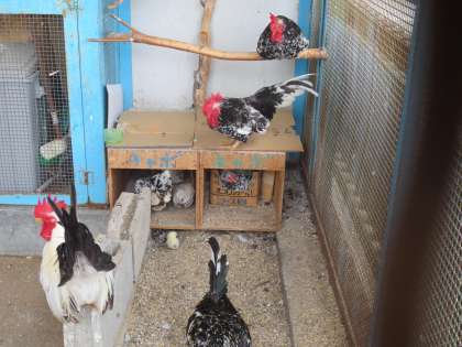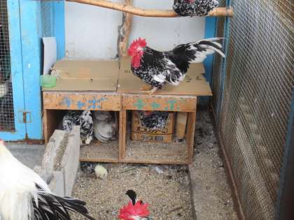 お姉さん、お兄さんのひなと仲よく元気に育っています。子どもたちや地域の方、保護者の方々も世話をして下さっています。チャボは全部で10羽になりました。とてもにぎやかです。