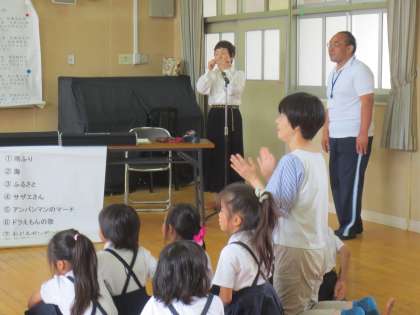 子どもたちは元気よく大きな声で歌っていました。歌や遊びを通して子どもたちに豊かな心を育てようと、「はぐくみネット」の方々が、心優しく接してくださっておりました。