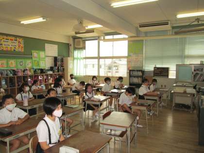 教室では、子どもたちがしっかりと話に耳を傾けていました。