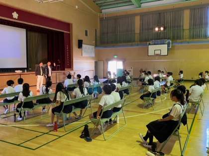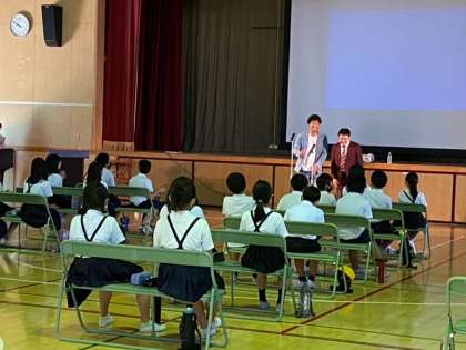 5年生のお笑いを取り入れた出前授業です。