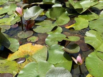 花は「睡蓮(スイレン)」で花言葉は「清純な心」です。(写真はレインボーパークの睡蓮です)