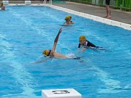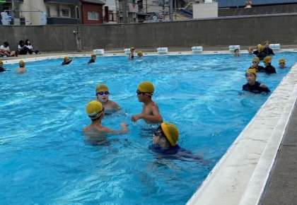 「手足の動きに呼吸を合わせ続けて長く泳ぐこと」が高学年の目標です。頑張りました。