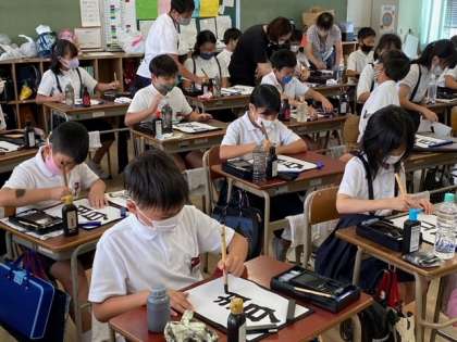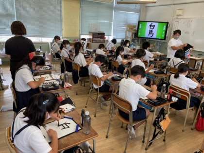 ・国語科(書写)は、「白馬」を書きました。 姿勢を正して、力強く書いています。