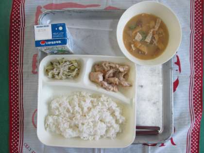 鶏肉のしょうゆマヨネーズ焼き、とうがんのみそ汁、切干しだいこんのゆずの香あえ、ごはん、牛乳