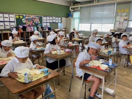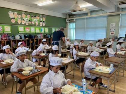 さあ、給食の時間です。 夏バテをしないようにしっかりと食べましょう。
