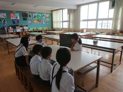 学校たんけんでは、1年生が学校にある色々な教室を6年生のお兄さん、お姉さんと一緒にたんけんします。