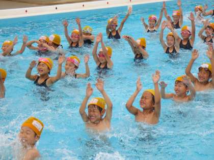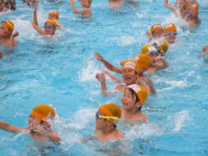 いっぱい水しぶきを上げ、力強く動いています。頼もしい2年生です。笑顔もいっぱい見えました。