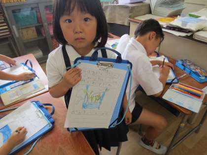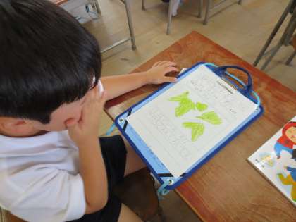 つるののび方や葉っぱのかたちもしっかりと観察しています。