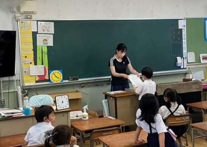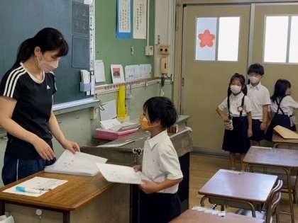 1年生の子どもたちが、担任の先生から通知表を受け取りました。