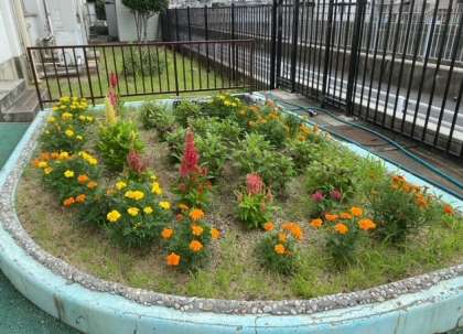見る人も少ないですが、綺麗に手入れされていて、夏の花々が咲いています。