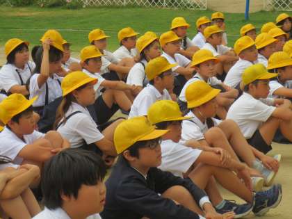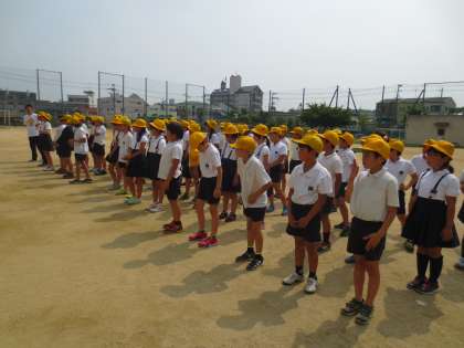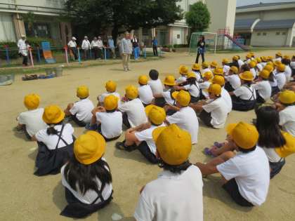 作業を終え、緑化実行委員会の諸富さんにご挨拶をいただきました。頑張っていた5年生の児童たちをほめていただきました。