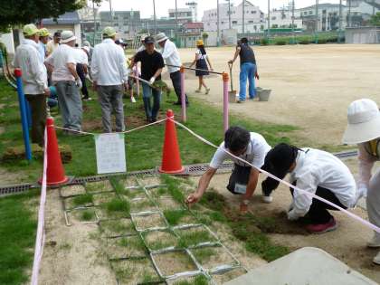 6/29 校庭緑化 芝生の植えつけ作業(1)