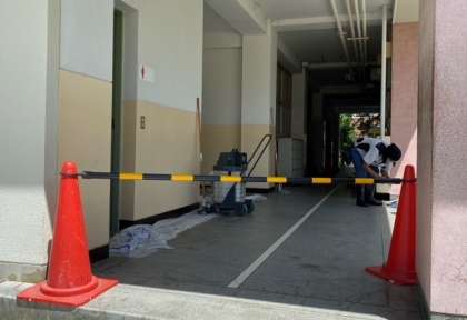 夏季休業中、業者による校舎内のトイレ清掃を行っています。隅々まで汚れを取り、清潔に使用できるようにしています。