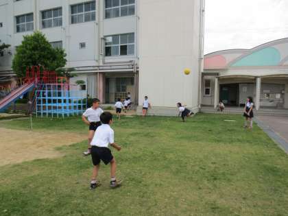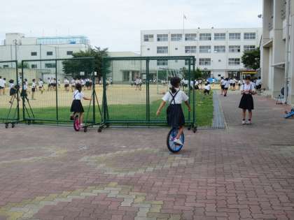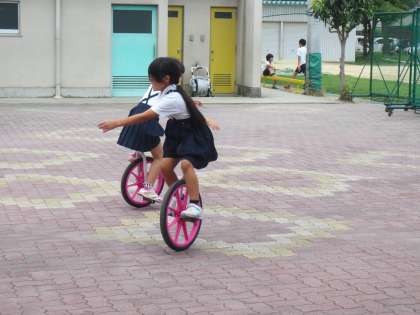 芝生のうえで、ドッジボールもしていました。一輪車にもチャレンジしていました。