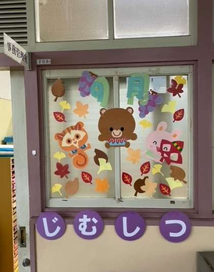 事務職員さんにテーマを聞くと「落ち葉遊び」とのこと、なるほどですね。
