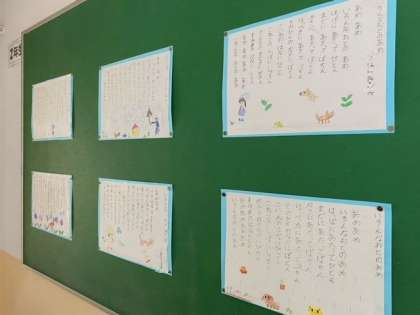 2年生の子どもたちが、国語科で学習した詩「いろんな おとの あめ」の視写です。