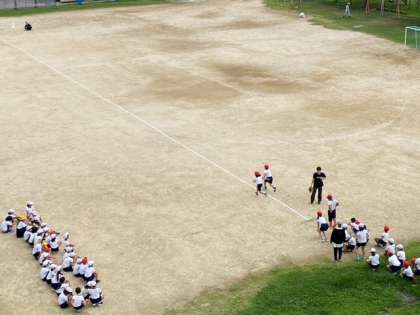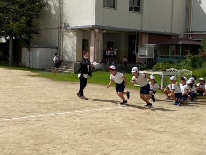 子どもたちが、全力疾走しています。