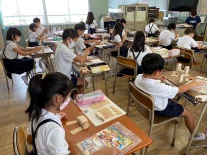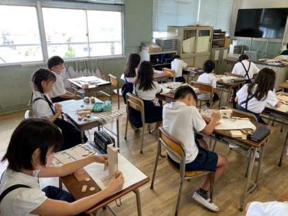 1組の図画工作科は、「くぎうちトントン」という教材を使って作品づくりをします。